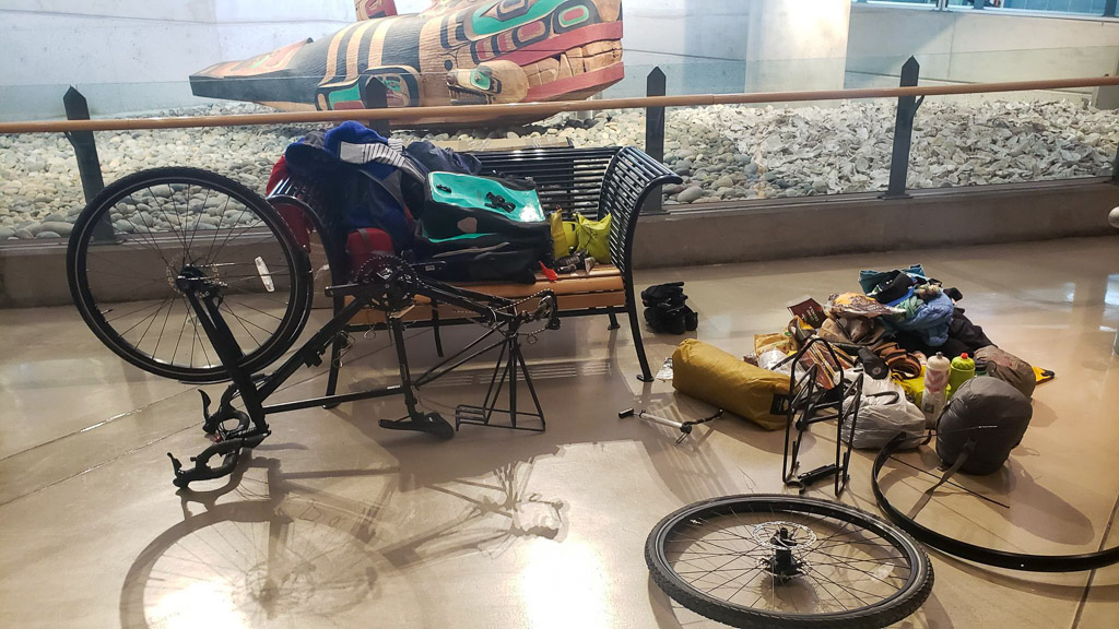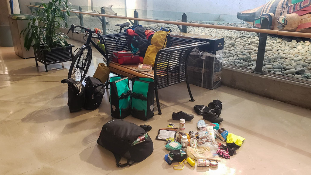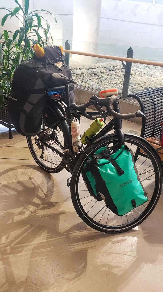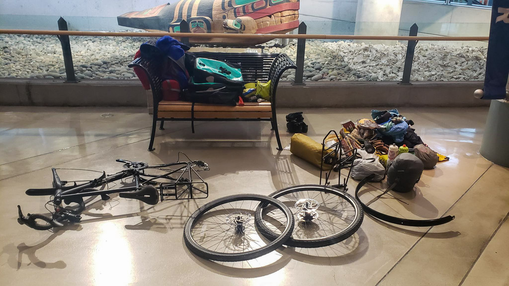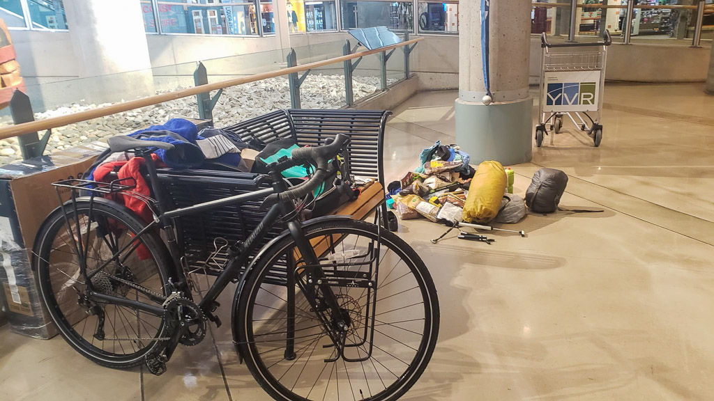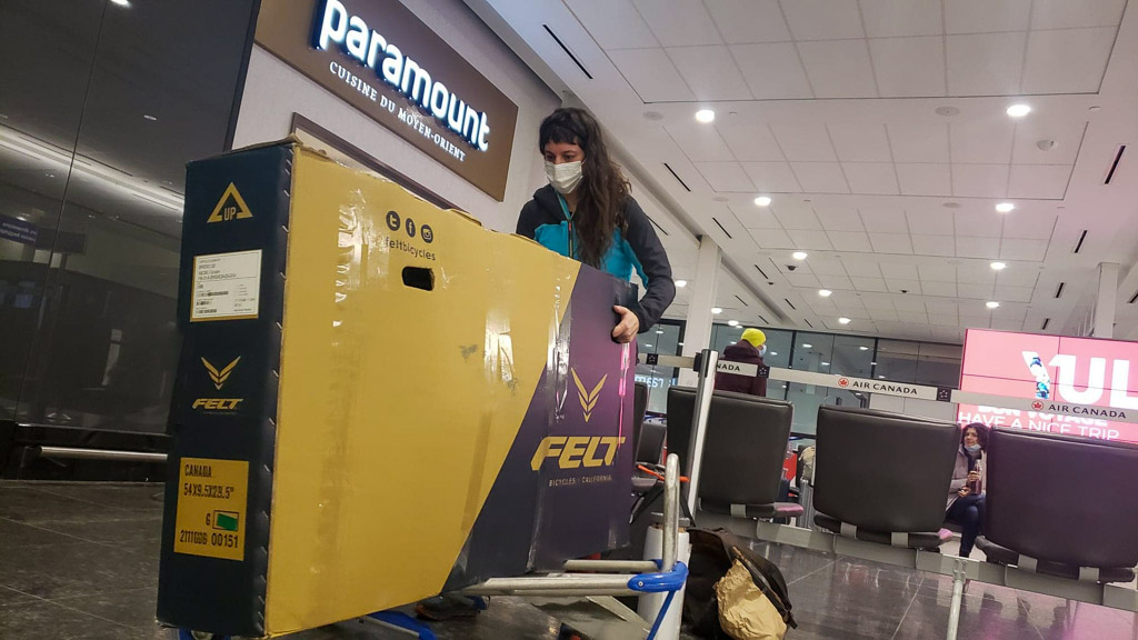 With the first day of spring, Julie finally took off Saturday morning around 8:00 am to land in Vancouver in the early afternoon around 1:30 pm (Pacific time). It was a long day… Not easy to travel by plane with your bike !