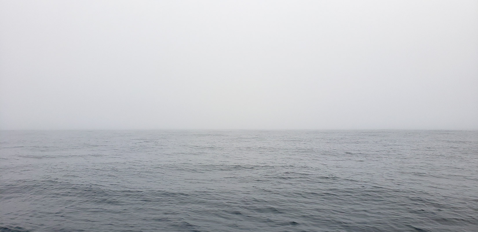 The next day, phew… the sea is calm, very calm. It will be a day of sailing with the motor to leave Grey River and head for Ramea Island. I feel better, even better and we take advantage of this moment to fish and look at the foggy horizon… How quiet it is!